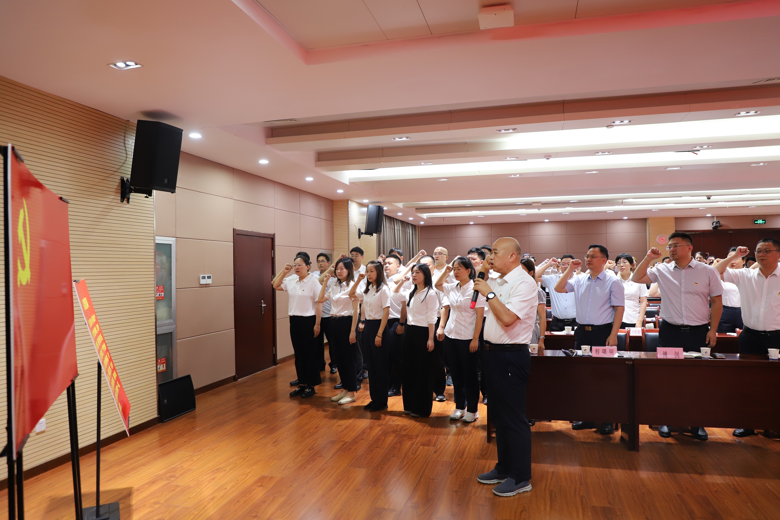 會(huì)議邀請(qǐng)部分黨員代表重溫入黨志愿書(shū)。光榮在黨50周年黨員、監(jiān)測(cè)中心退休職工費(fèi)業(yè)好同志,市國(guó)資委系統(tǒng)優(yōu)秀共產(chǎn)黨員、金太陽(yáng)公司尹海同志,近年新發(fā)展黨員代表、泊車(chē)集團(tuán)陶震同志,集團(tuán)選派駐村第一書(shū)記魏皓同志分別對(duì)照入黨時(shí)的莊嚴(yán)承諾和奮斗決心,分享了堅(jiān)守初心、履職盡責(zé)的經(jīng)歷和感悟,引發(fā)在場(chǎng)黨員共鳴。會(huì)議還舉行重溫了入黨誓詞儀式,集團(tuán)黨委書(shū)記、董事長(zhǎng)雍鳳山帶領(lǐng)新發(fā)展黨員及與會(huì)全體黨員,面向黨旗莊嚴(yán)宣誓,激勵(lì)每一位黨員不忘初心、擔(dān)當(dāng)實(shí)干。